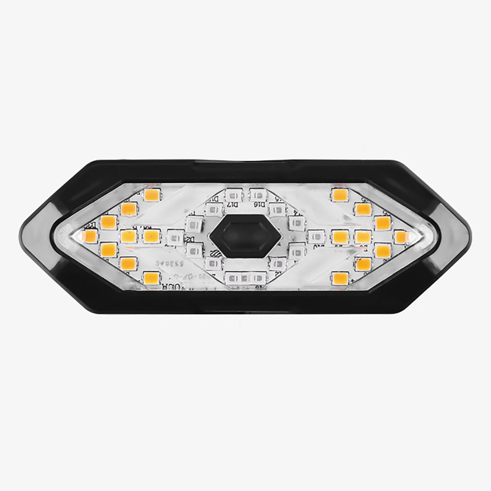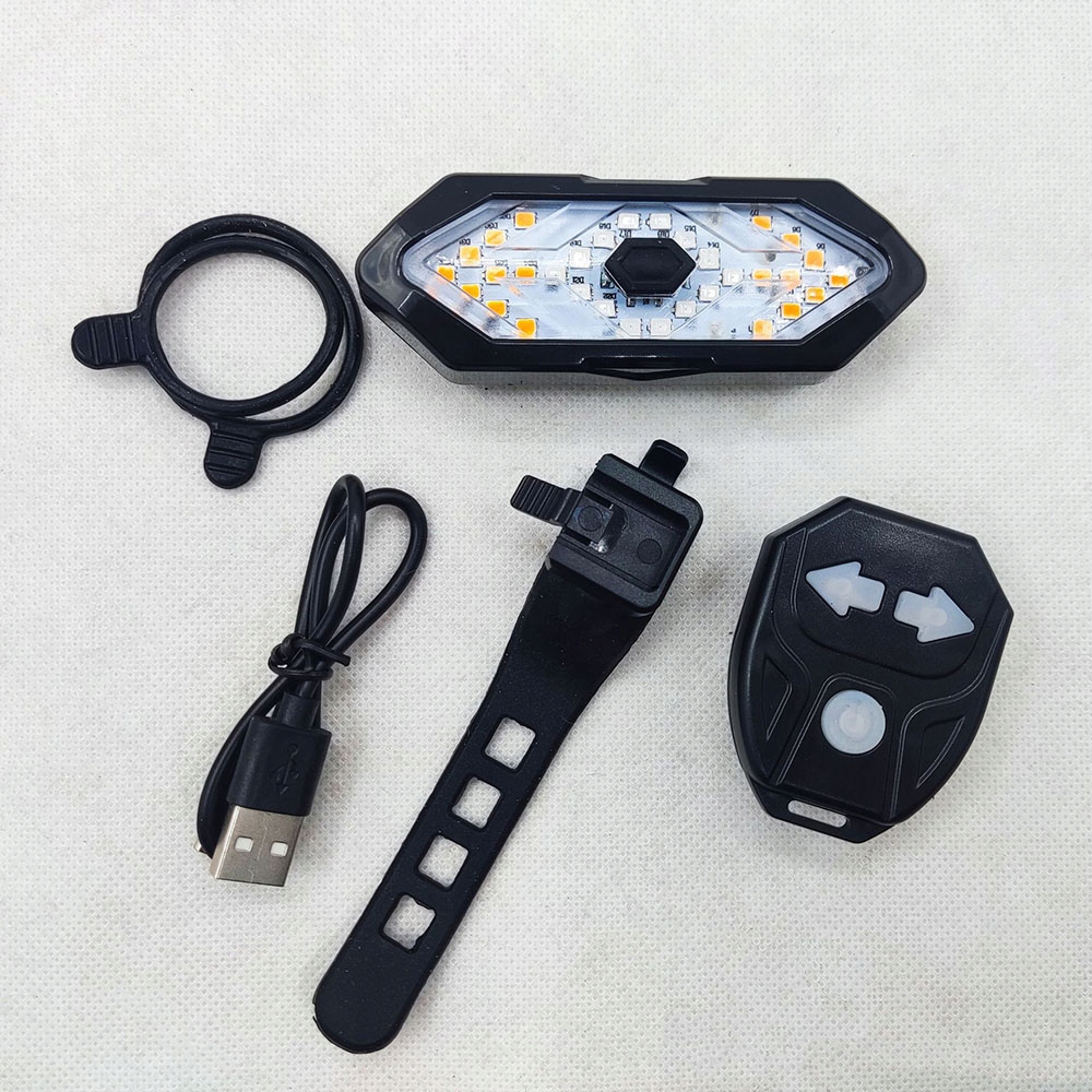 Завдяки бездротовому пульту дистанційного керування, що входить до комплекту, керування ліхтарем і покажчиками повороту надзвичайно просте та інтуїтивно зрозуміле: ліва кнопка: увімкніть лівий покажчик повороту, миготливий, права кнопка: увімкніть правий покажчик повороту блимає, головна кнопка - увімкнути задні ліхтарі, головна кнопка (друга для введення) - увімкнути задні ліхтарі блимає, головна кнопка (третя для сигналу) - включати задні ліхтарі та покажчики поворотів (дальнє світло).