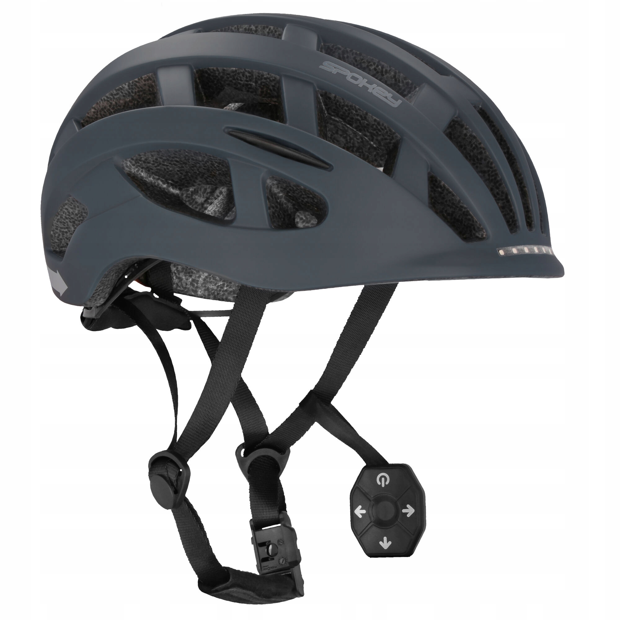 Однією з найбільших переваг велосипедного шолома Spokey POINTER PRO є його вага - він не є зайвим тягарем, оскільки важить лише 250 г і в той же час він надзвичайно міцний. Внутрішній шар дорожнього шолома - це EPS піна, яка чудово поглинає вібрації, що виникають під час їзди по нерівних поверхнях, і поглинає силу удару під час падінь. Велосипедний шолом POINTER PRO забезпечує повну безпеку - навіть вночі! Завдяки світлодіодному освітленню з покажчиками повороту, вас буде видно завжди і скрізь, незалежно від умов, що склалися. Ви можете легко вказати своє бажання змінити напрямок руху за допомогою зручного пульта дистанційного керування.