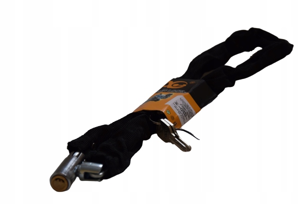 Міцний міцний ланцюг виготовлений із високоякісної загартованої сталі. Броньований замок загартований, а його конструкція захищає від спроб підчепити та просвердлити замок. Ланцюг покритий естетичним і атмосферостійким матеріалом, який додатково захищає велосипед від подряпин. Довжина 80 см дозволяє легко закріпити велосипед.