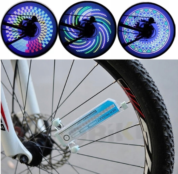 - Рух колеса обертається на спицьовому світлі, який через різні послідовності світлодіодів відображає різні візерунки на обертовому колесі.