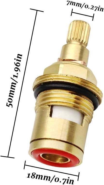 - Виріб має довжину 50 мм і має 20 шестерень у верхній частині клапана, розмір різьби G 1/2" BSP.