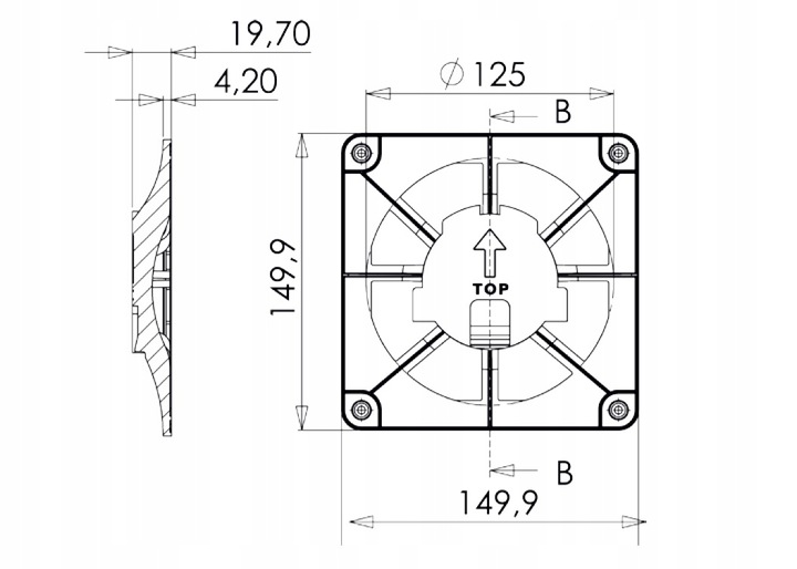 - Ширина та висота Y: 149,9 / 149,9 мм