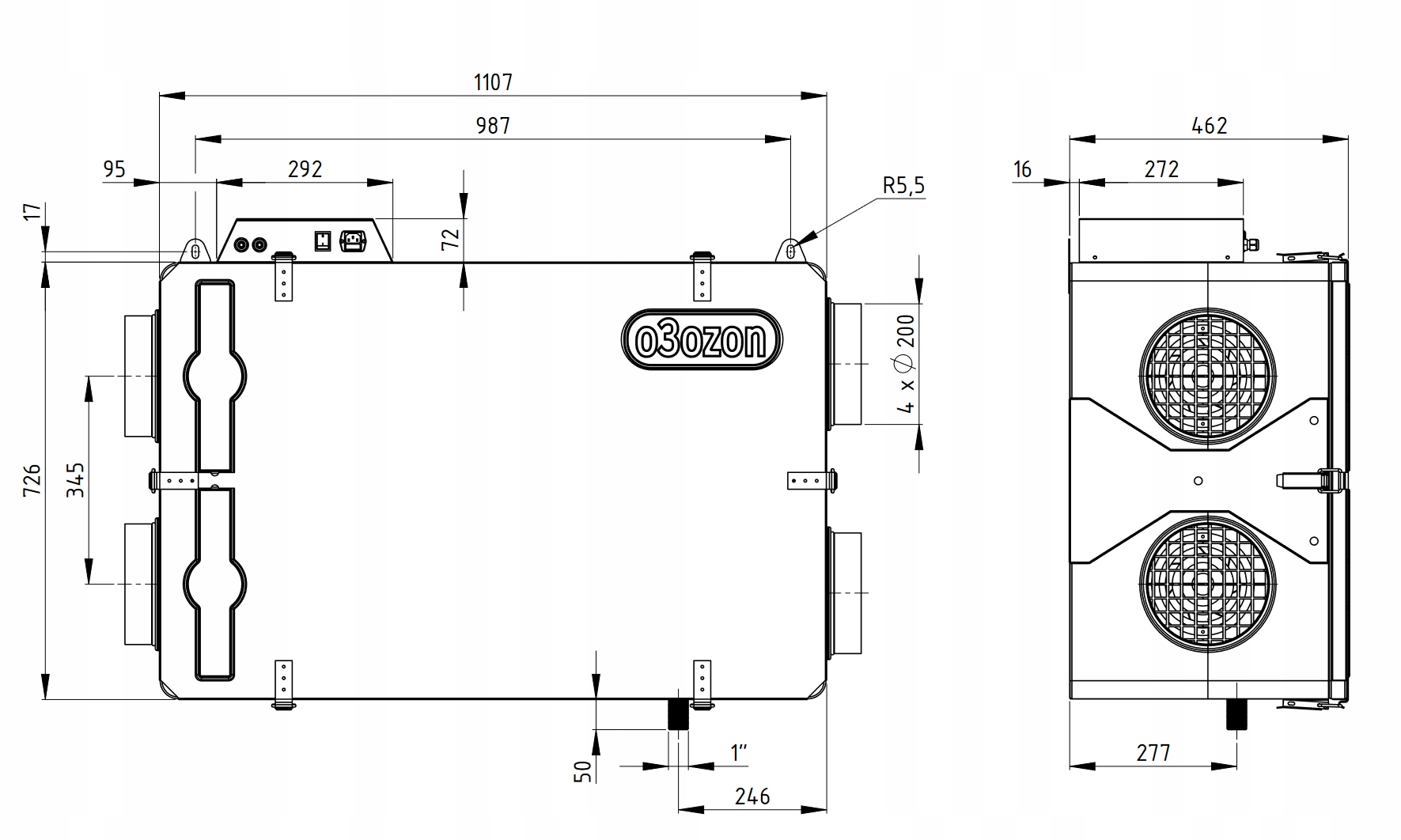 - Вентилятори EC Максимальна продуктивність: до 800 м3/год (німецьке виробництво)