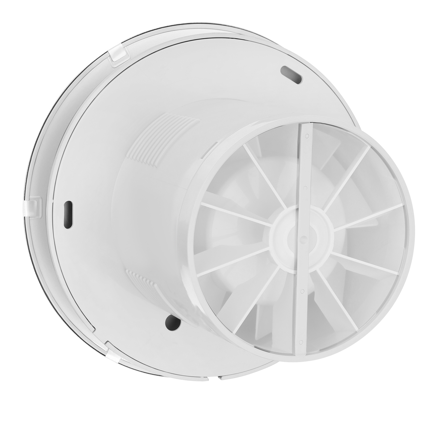 EBERG AXO 100ST - вентилятор для ванної кімнати, оснащений регульованою затримкою часу. Вентилятор починає працювати при включенні вимикача світла або окремого вимикача. Після виходу з ванної кімнати вентилятор продовжує працювати встановлений час. Час затримки можна встановити в діапазоні від 30 секунд до 30 хвилин -вибране значення затримки буде підтверджено світлодіодним індикатором.