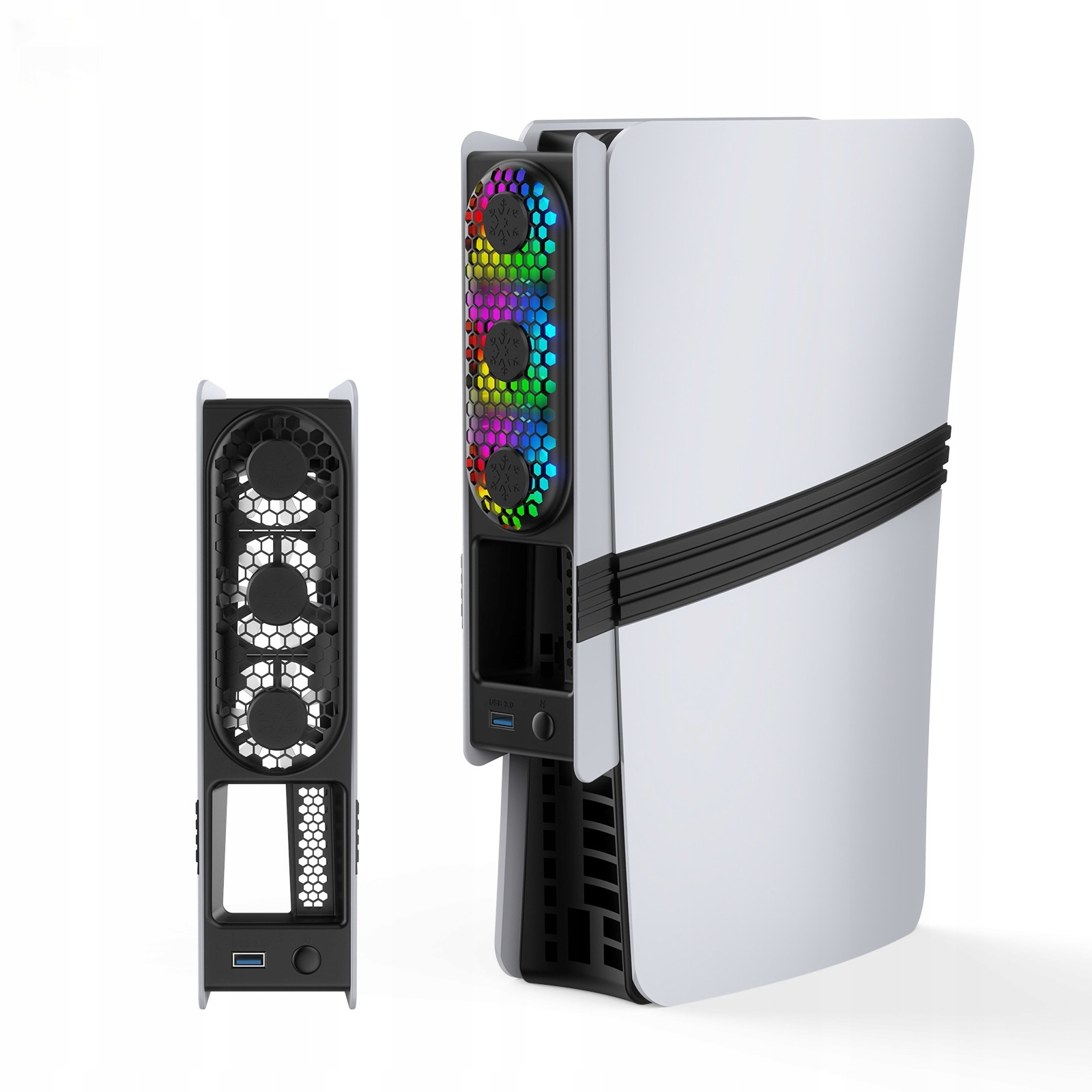 Зовнішній вентилятор охолодження з підсвічуванням RGB: покращте атмосферу гри за допомогою підсвічування RGB. Цей зовнішній вентилятор охолодження пропонує три режими повітряного потоку, що регулюються, що дозволяє налаштувати охолодження та додати стилю вашим налаштуванням.