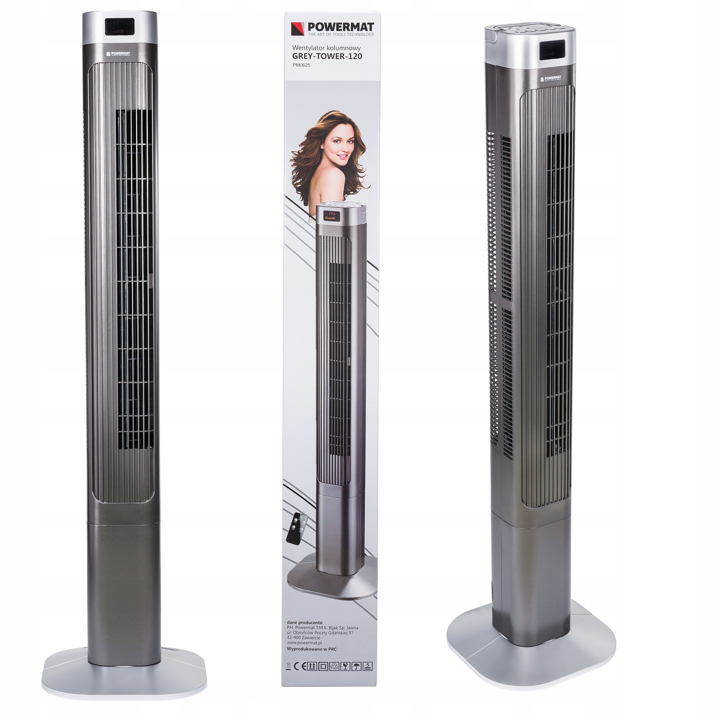 Колонний (баштовий) вентилятор POWERMAT модель Grey Tower-120за рахунок своїх габаритів (висота 121см) сила обдування більша при меншій швидкості обертання. Завдяки таким розмірам вентилятор працює тихіше, ніж менші версії.