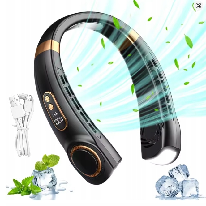 - Насолоджуйтесь приємним холодом, де б ви не були, завдяки цьому інноваційному вентилятору на шиї. 4 4 Навушники дозволяють зручно повісити його на шию.