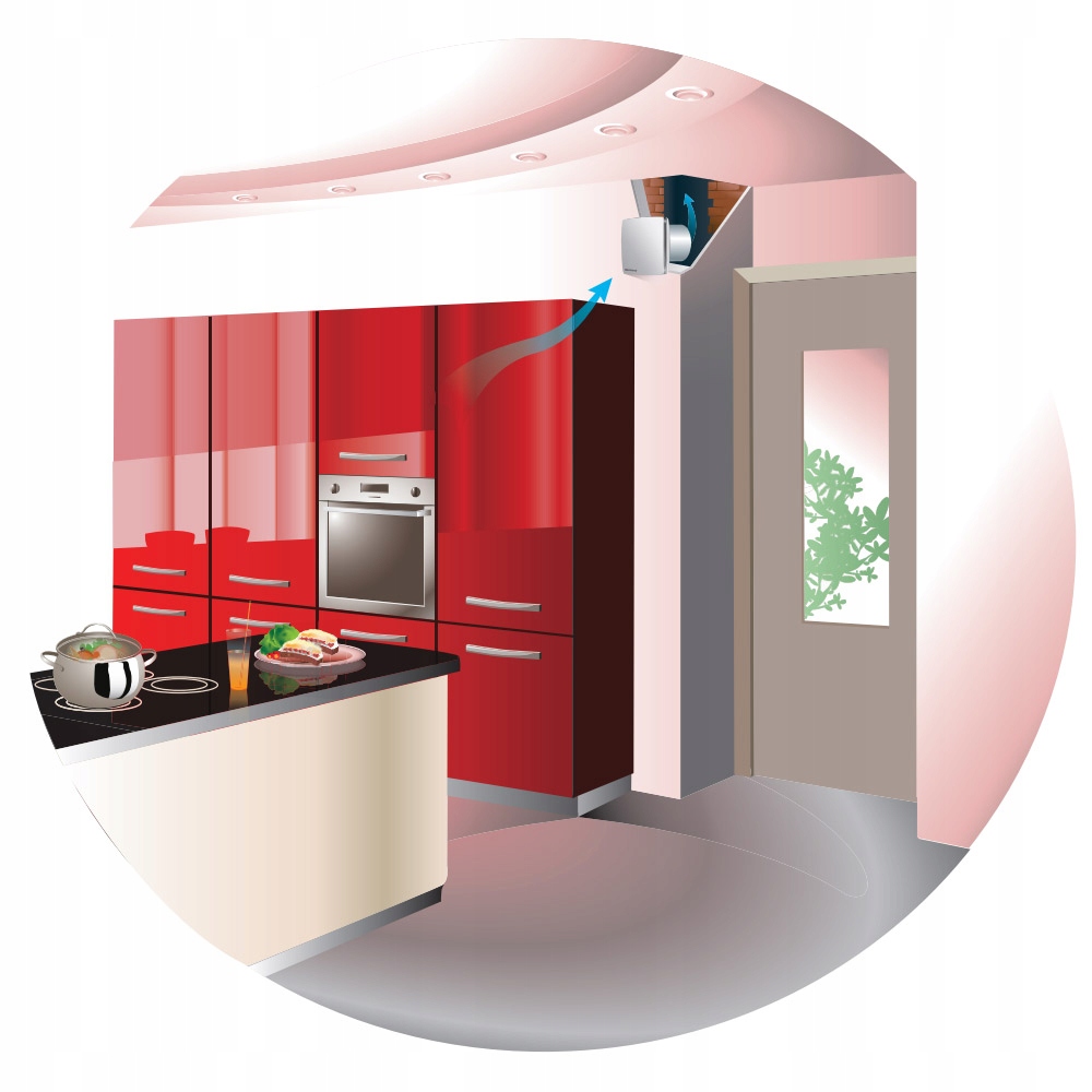 Настінний вентилятор з таймером і датчиком вологості, продуктивність 167 м³/год. Вентилятор монтується до отвору вентиляційного каналу Ø=125 мм. Вентилятори