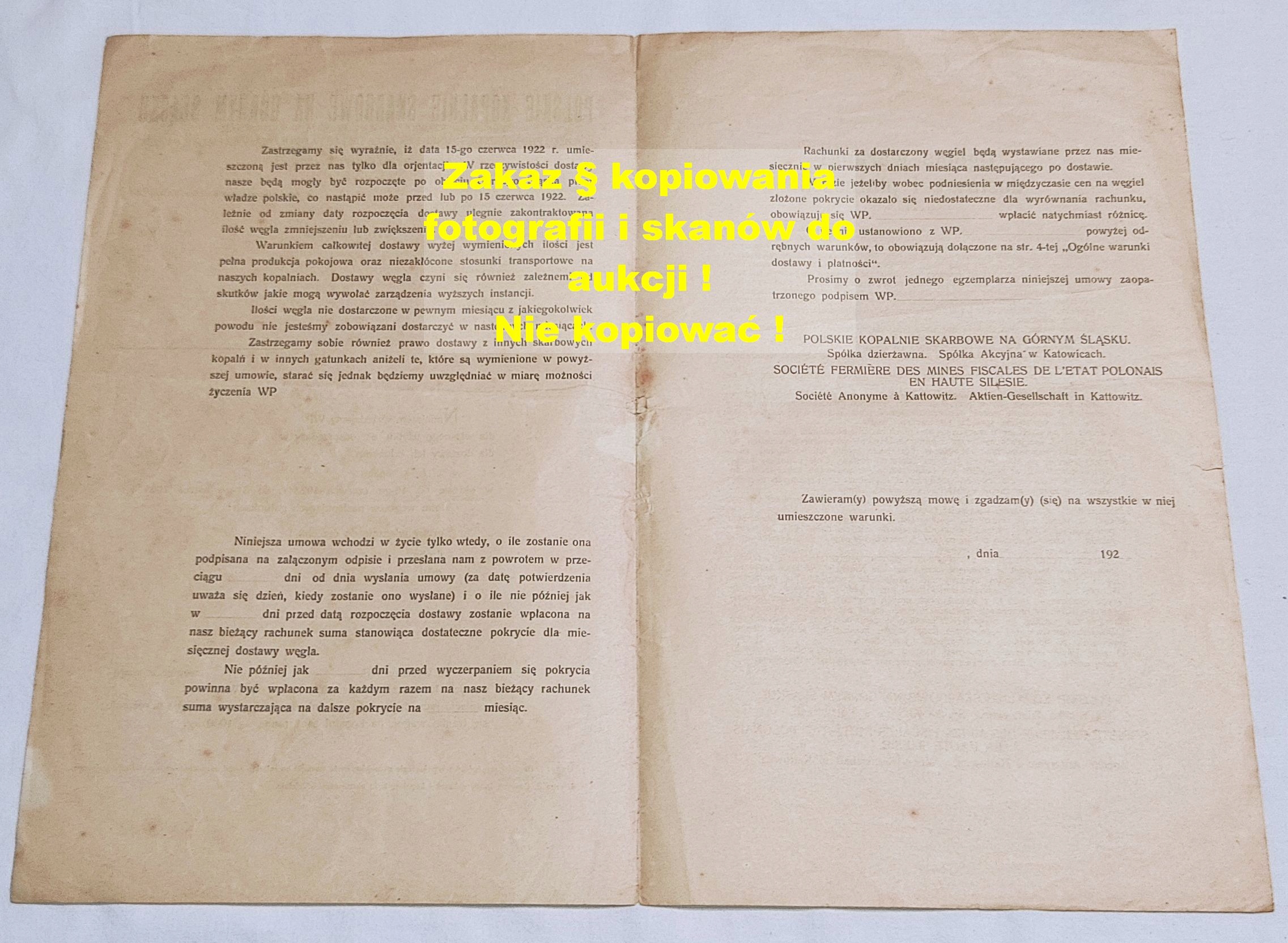 ВЕРХНЯ СІЛЕЗІЯ SKARBOFERM SPÓŁKA AKCYJNA УГОДА WEGIEL MINE DRUK 1922