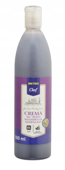 Познайомтеся з унікальним кремом з бальзамічним оцтом від Modena METRO Chef, який додасть вашим стравам неповторний кисло-солодкий смак і аромат. Завдяки ідеально збалансованому рецепту на основі концентрованого виноградного сусла та оригінального бальзамічного оцту з Модени (39%) цей продукт є справжньою перлиною італійської кухні.