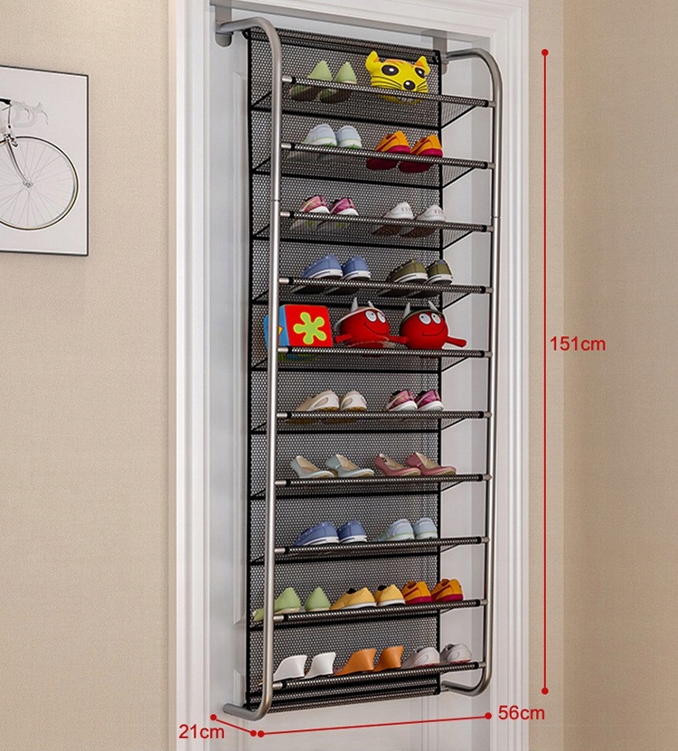 Полиця, встановлена на дверях, має 10 поверхів і може використовуватися для зберігання взуття, а також інших легких дрібних предметів, таких як іграшки, м’які тварини, шарфи, шапки, рукавички чи сумочки. Оскільки він виготовлений із тканини, не кладіть на нього важкі предмети, наприклад книги.