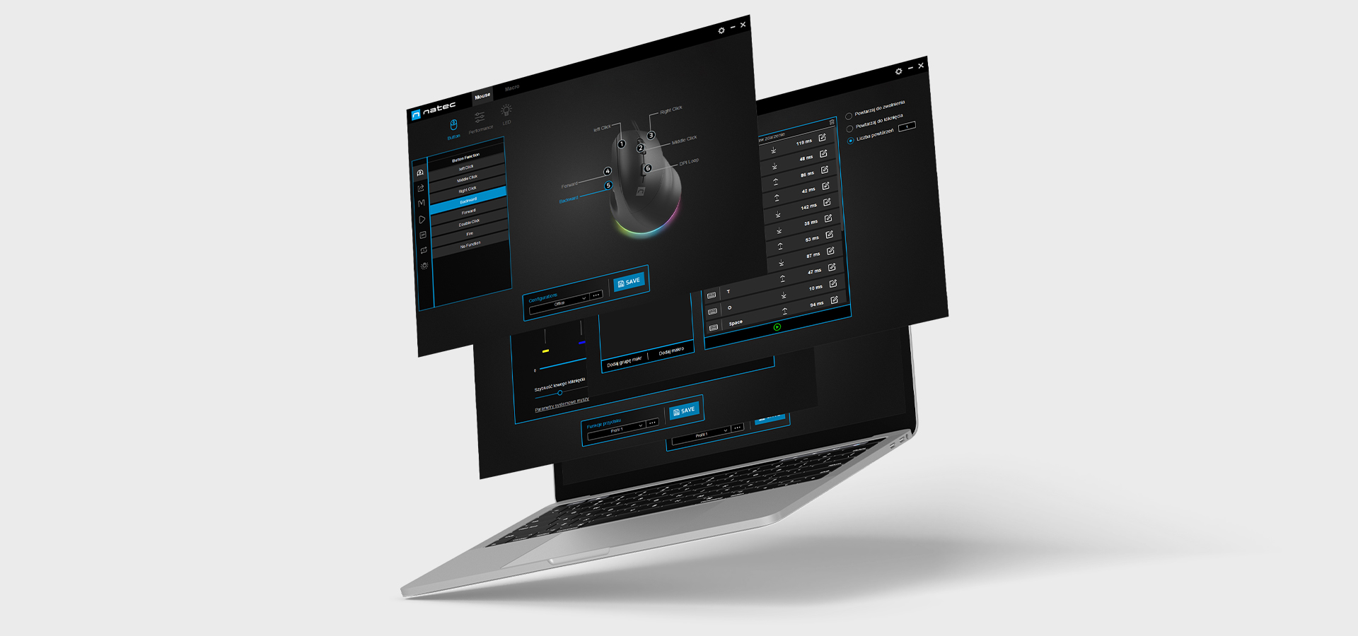Персоналізація є запорукою зручності та ефективності. Наша миша оснащена спеціалізованим програмним забезпеченням, яке дозволяє завантажувати макроси та регулювати функцію кнопок. Крім того, Crake 2 Pro має вбудовану пам'ять, завдяки якій він пам’ятає всі налаштування навіть після вимкнення комп'ютера або підключення до іншого. Відрегулюйте поведінку миші до різних завдань і отримайте повний контроль над своїми уподобаннями відразу після її запуску.