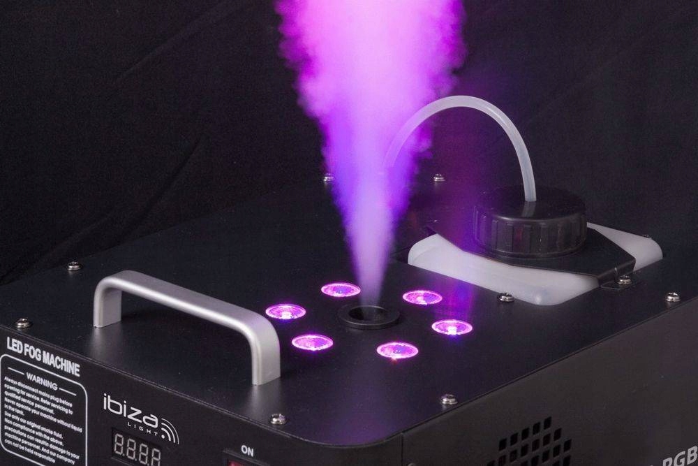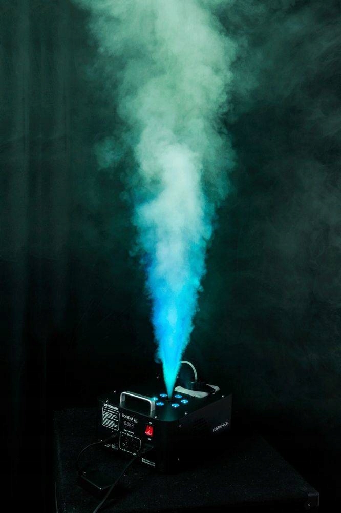 Можна встановлювати як на землю димоходом вгору, так і підвішувати вниз головою до стелі з ефектом димоходу вниз. Він має дистанційне керування, тому ви можете легко керувати ним дистанційно. Генератор також можна підключити до контролера DMX. Має вбудовані 6 світлодіодів потужністю 3 Вт кожен, які, сяючи кольорами RGB 3в1, разом з димом дають дивовижний ефект. Потужна димова машина має нагрівач потужністю 900 Вт, який забезпечує вражаючий візуальний ефект за надзвичайно доступною ціною.