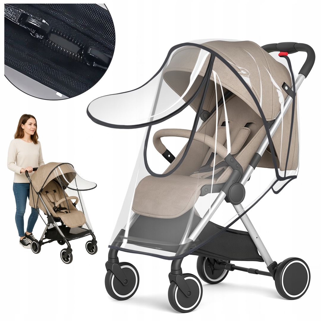 Універсальний захист від дощу з повним переднім отвором - дощовою кришкою, дитячою коляскою та спортивним автомобілем з вікном та подвійною блискавкою для відкриття - прозорий