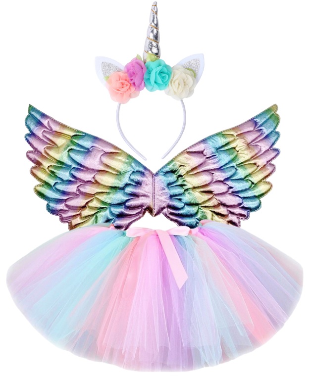 ВЕСЕЛКОВИЙ ЄДИНОРОГ СУКНЯ, СПІДНИЦЯ-ПАЧКА, ПОВ'ЯЗКА НА ГОЛОВІ КРИЛА 122 128