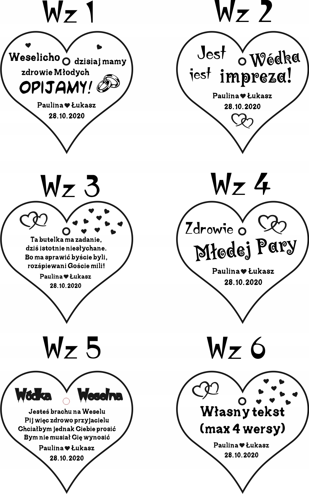 Унікальні прикраси для весільних пляшок неодмінно збагатять весільний декор, зацікавлять гостей, а веселі тексти спонукатимуть гостей до перших розмов за столом.