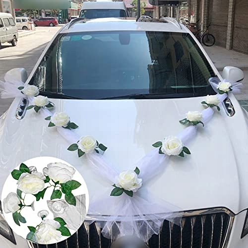 ВИСОКА ЯКІСТЬ - Весільна прикраса для автомобіля виготовлена з марлі та штучних квітів, не в'яне, дуже довговічна та екологічна завдяки відмінній якості виготовлення і зовні дуже схожі на справжні квітучі троянди. Ви можете вибрати свій улюблений колір, щоб прикрасити свій автомобіль.