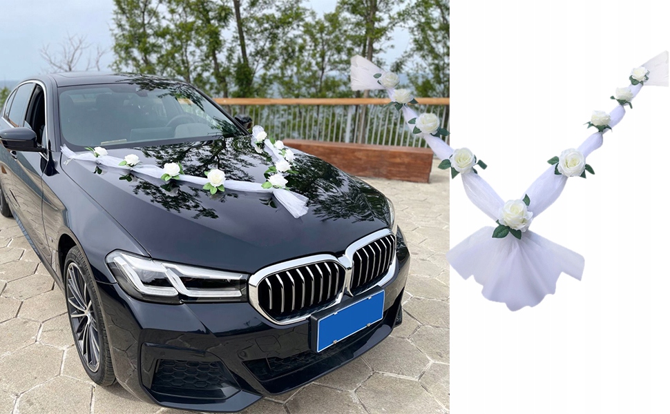 ВЕСІЛЬНА ДЕКОРАТИВНА АВТОМОБІЛЬ - Можна використовувати як прикрасу автомобіля під час весілля. Це дуже красиво і романтично і приверне увагу всіх прохожих. Підходить для всіх автомобілів. Воно може залишатися елегантним у будь-яку погоду.