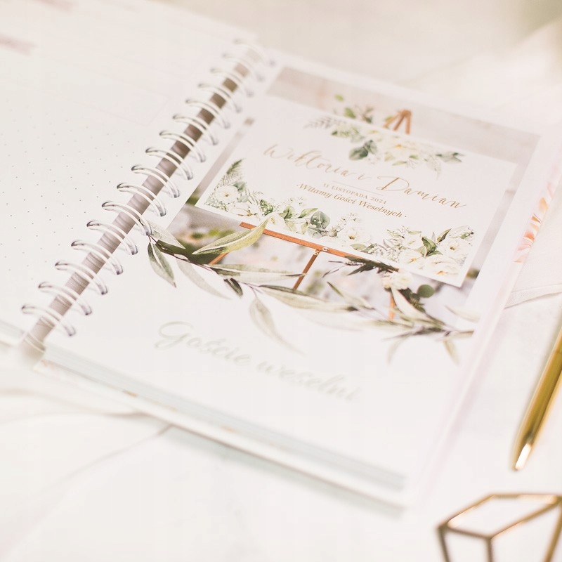 - Весільний планувальник має жорстку обкладинку, яка з’єднана зі сторінками спіраллю.