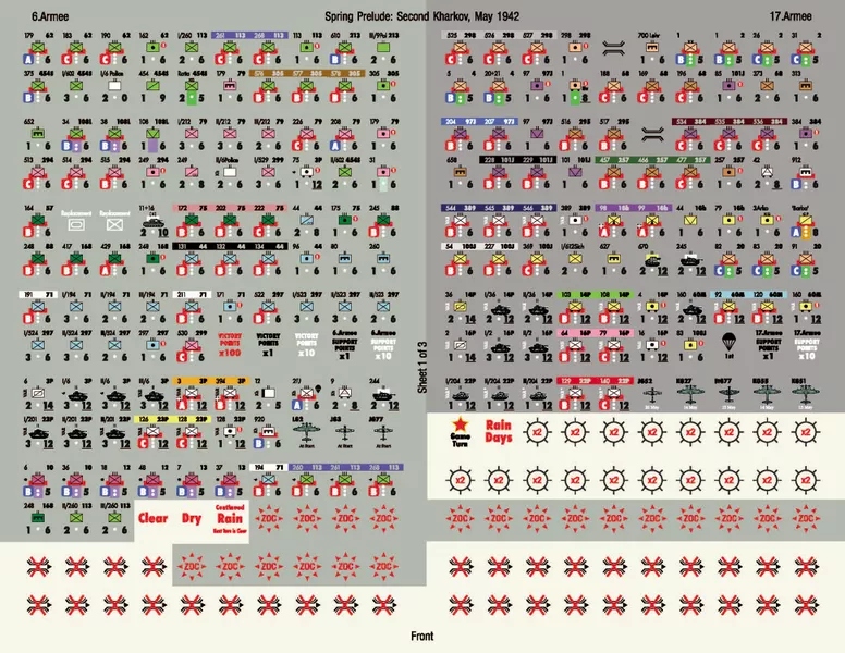 У цій системі більшість підрозділів (зазвичай представляють більші формування) мають змінну силу одиниць. Фішка сили витягується під час бою, щоб визначити точну бойову цінність підрозділу; міцний чіт після того, як витягнутий, ховається під блоком, щоб збільшити «туман війни». Друга битва за Харків — це ідеальна ігрова ситуація, щоб заманити гравців у світ сильних ударів.