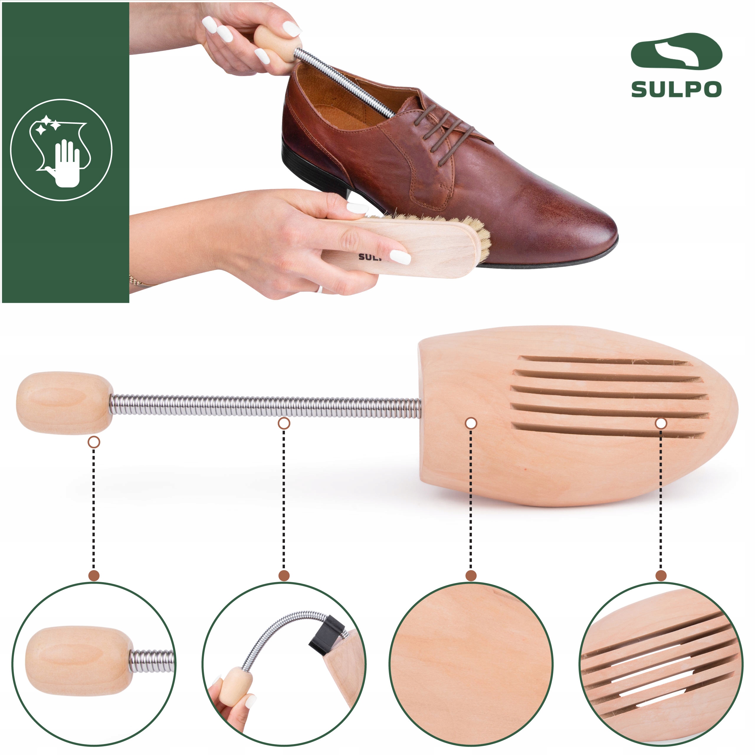 Взуттєві дерева впливають на поверхню взуття, розгладжуючи зім’яті туфлі. Поєднання дерев'яної втулки з гнучкою пружиною робить взуттєві ялинки універсальними - вони підходять до різних типів взуття. Правильно сформована підошва сприяє збереженню естетичного вигляду взуття.