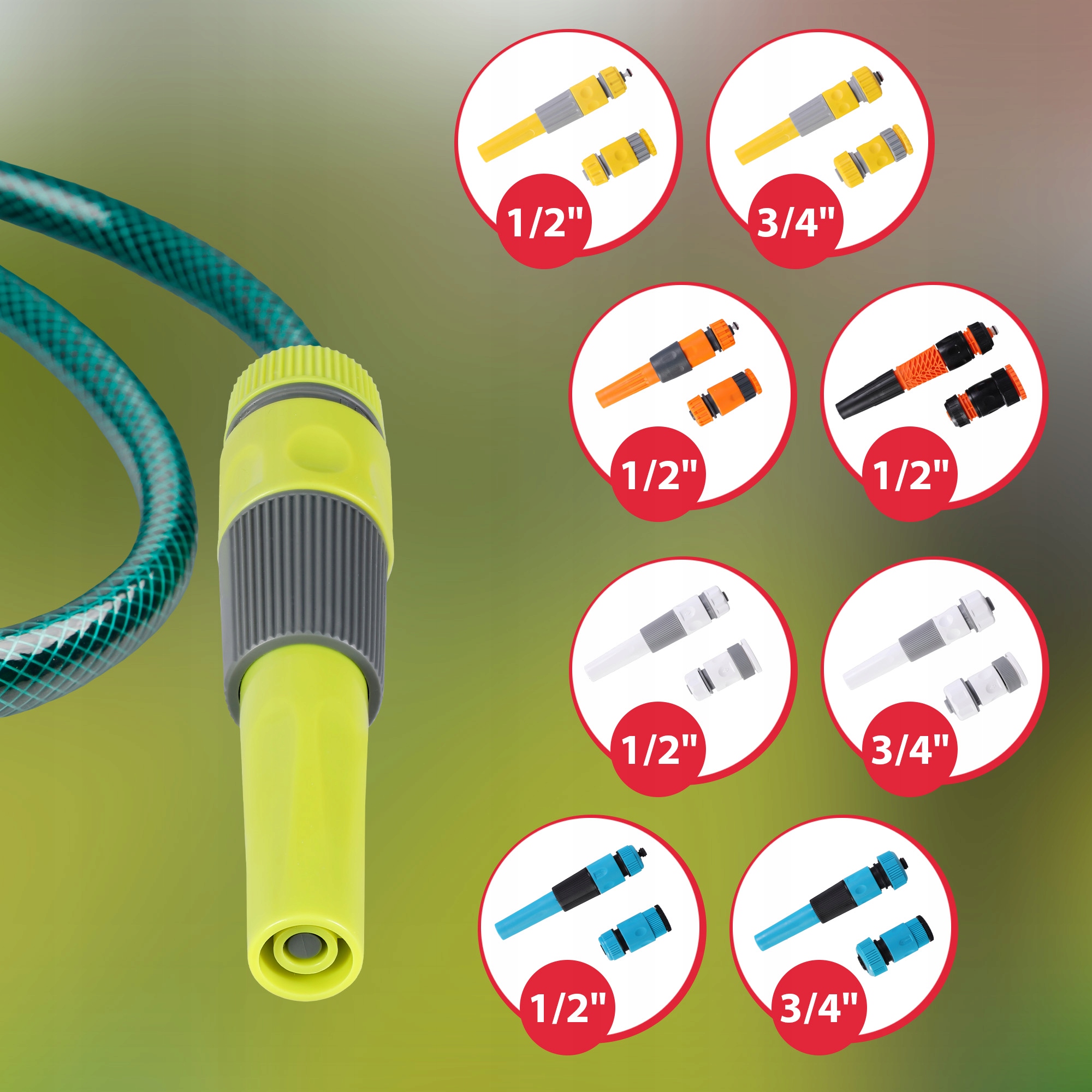 Набір чотирьох елементів для садового шланга забезпечують всебічне рішення для ефективного використання води в саду. Набір включає пряме, регульоване, швидке з'єднання для з'єднання зміїної змії, класичного підключення до зміїного з'єднання. ПВХ, стійкий до зміни погодних умов.