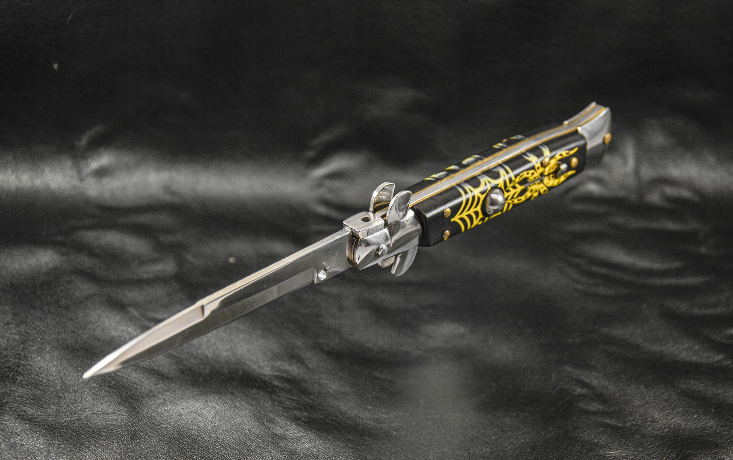 - Сильний механізм пружини дозволяє миттєво відкрити лезо, це ключовий елемент цього ножа. Один з популярних і ефективних пружинних механізмів, що використовуються в цьому італійському ножі, - це система під назвою "стилет" або "стилеттон". Ця весна розгортається навколо осі і відповідає за натягування та випуск енергії, необхідної для швидкого відкриття леза. Коли ви натискаєте спеціальну кнопку на ручці ножа, пружина вивільняється, що викликає раптове розширення леза. Ця система забезпечує миттєве відкриття ножа одним ходом.