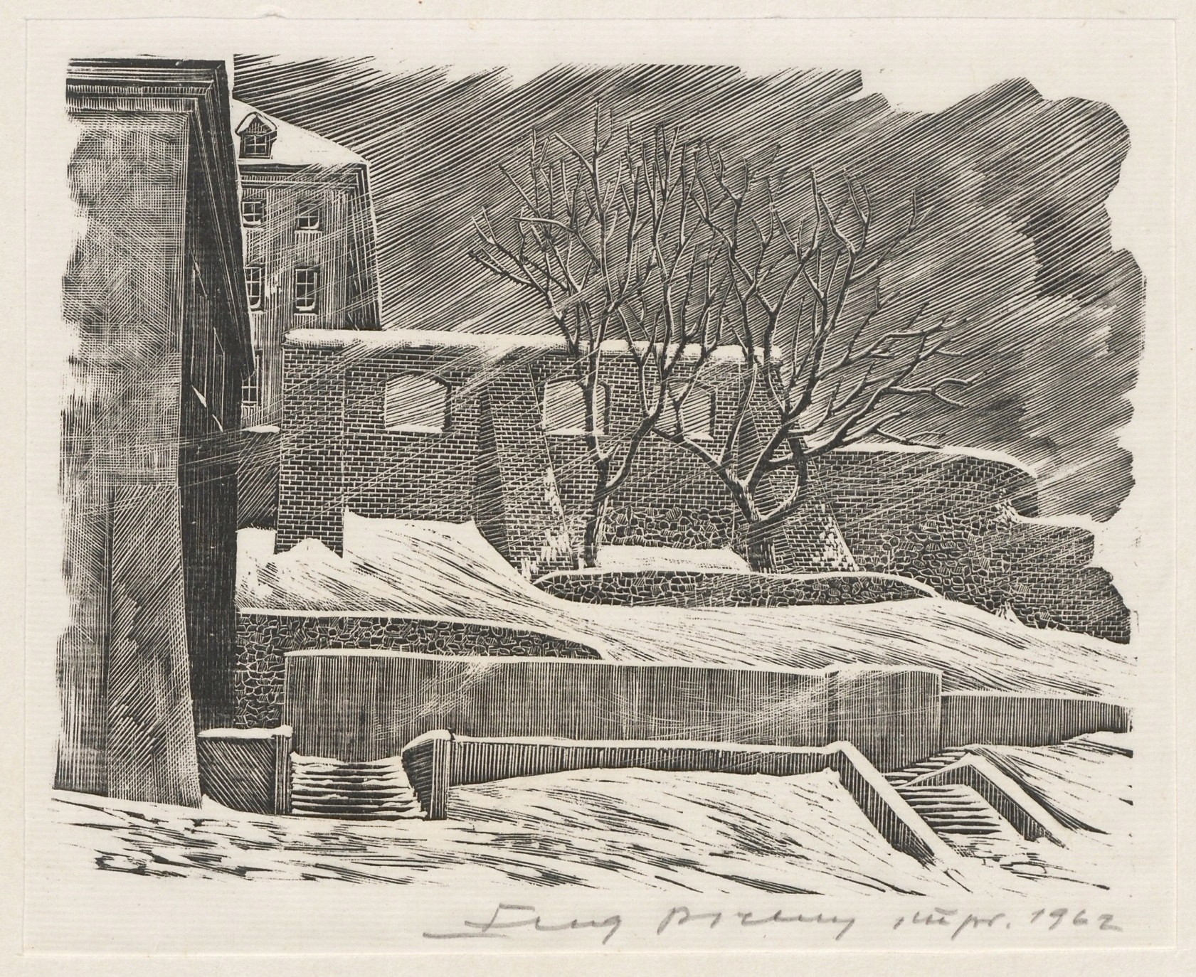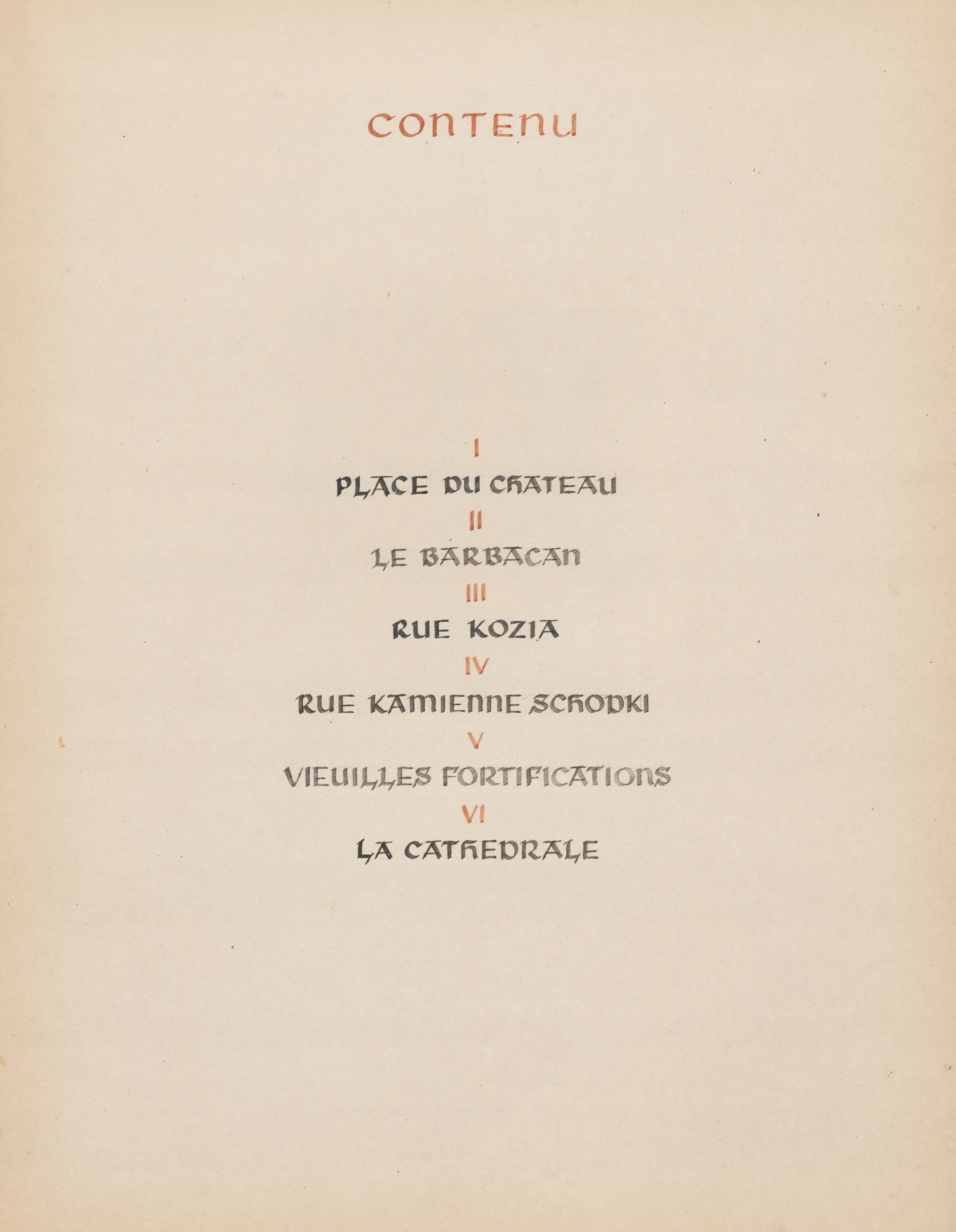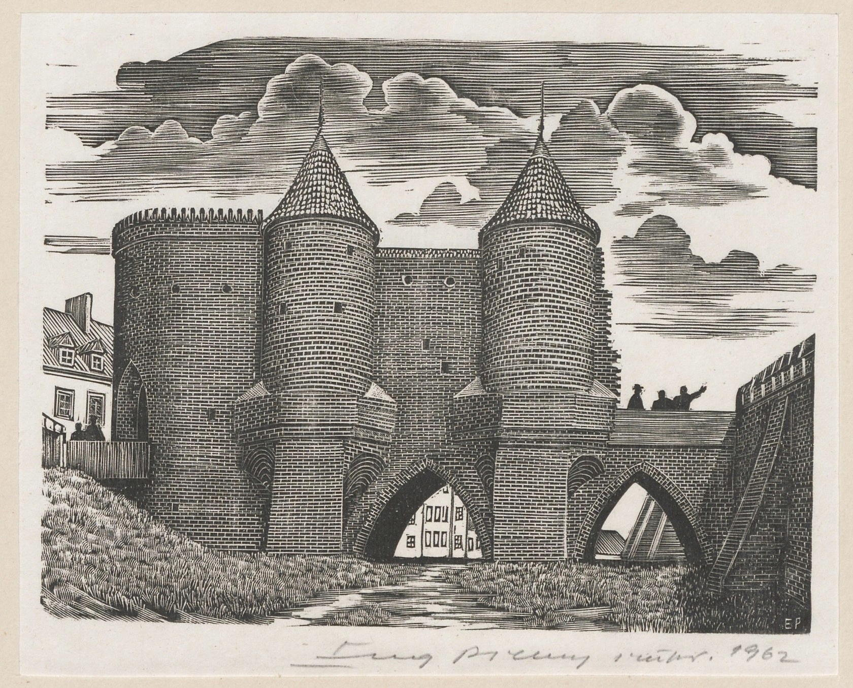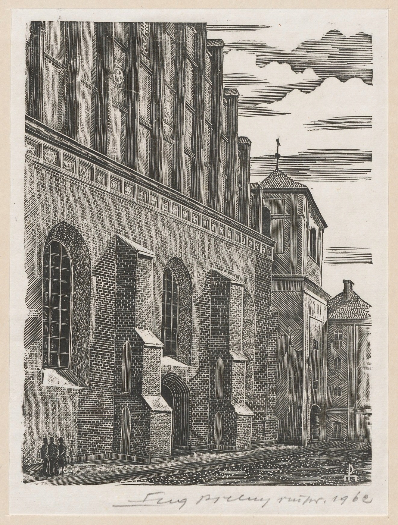 Варшава 1962. 32,5x43 см. Портфоліо з 6 гравюрами на дереві із зображенням Варшави роботи Євгеніуша Пічелла. Твори підписані та підписані автором. Список гравюр на дереві, написаних від руки. Ксилографії на бланку польських авіаліній. На ксилографії зображено: