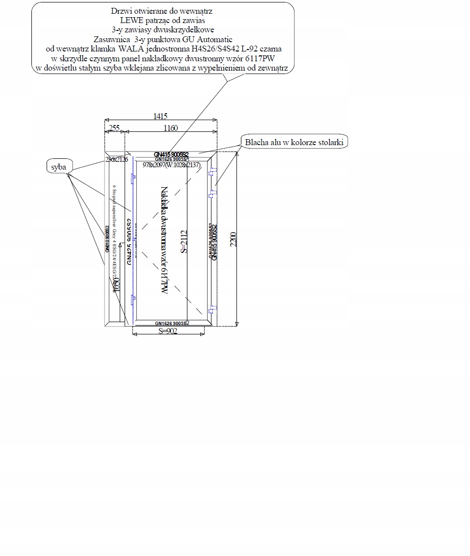 - ОДНОСТІЛКОВІ АЛЮМІНІЄВІ ДВЕРІ, ЩО ВІДКРИВАЮТЬСЯ НАЗОВНІ РОЗМІРАМИ 141,5 X 2200