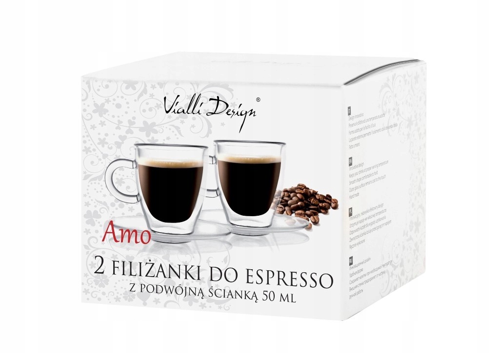Vialli Design 2 x thermal glasses for espresso amo 50 ml + 2 sauces + 2 small teaspoons Amef "bliss" h1> Дизайн Модель: AMO Номер каталогу: 3055 Ємність: 50 мл Висота: 6,4 см Діаметр: 5,7 см. CM доля: Кава еспресо посудомийна машина: Ні