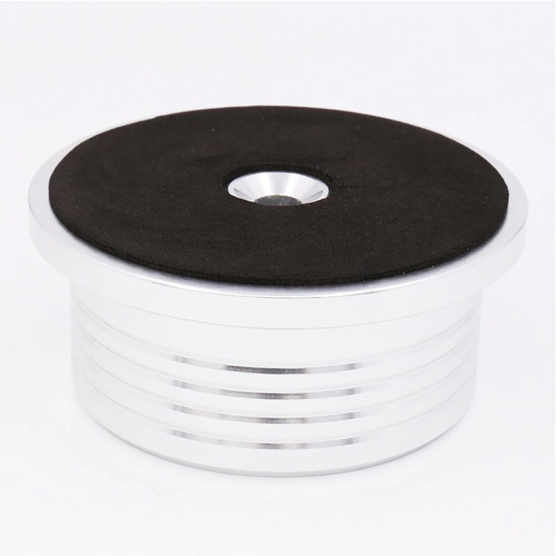 Натискний диск використовується для завантаження платівки та стабілізації її на пластині. Запобігає переміщенню платівки відносно пластини під час запуску та під час відтворення.