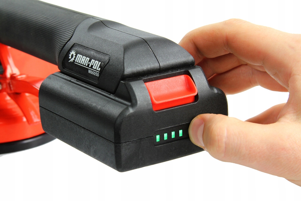 Присоска MAR-POL живиться від літієвої батареї 16,8 В і може використовуватися для внутрішньої та зовнішньої установки. Він замінює традиційну ручну роботу та допомагає уникнути проблем через неправильний розподіл клею під плиткою та великими плитами.