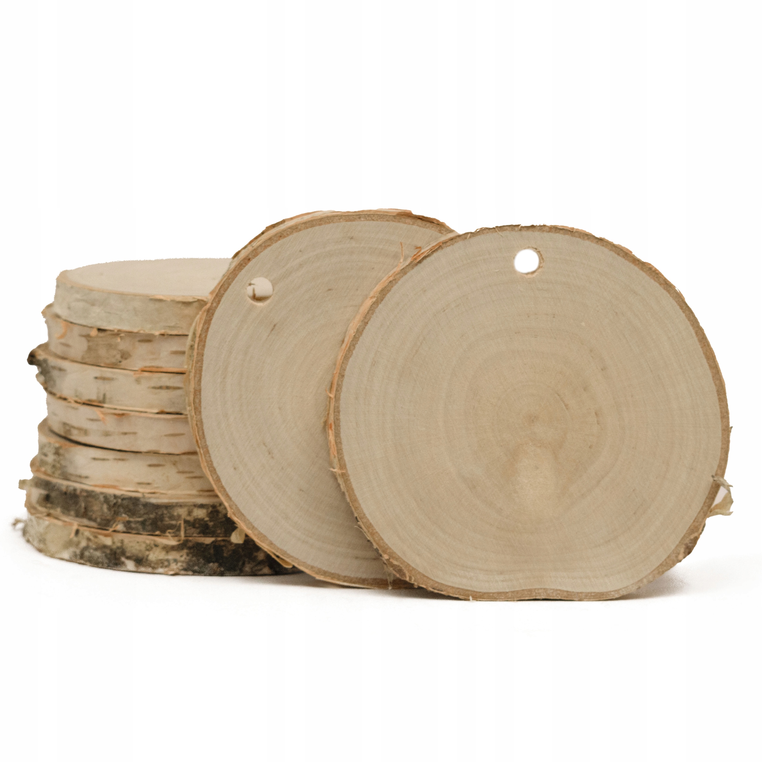 Скибка березової деревини діаметром 8-9 см, товщ 1 см, висока якість, шліфовані з двох сторін з отвором - 50 шт.