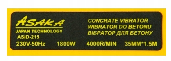 - Вібратор для бетону Asaka ASID-215 1800 Вт