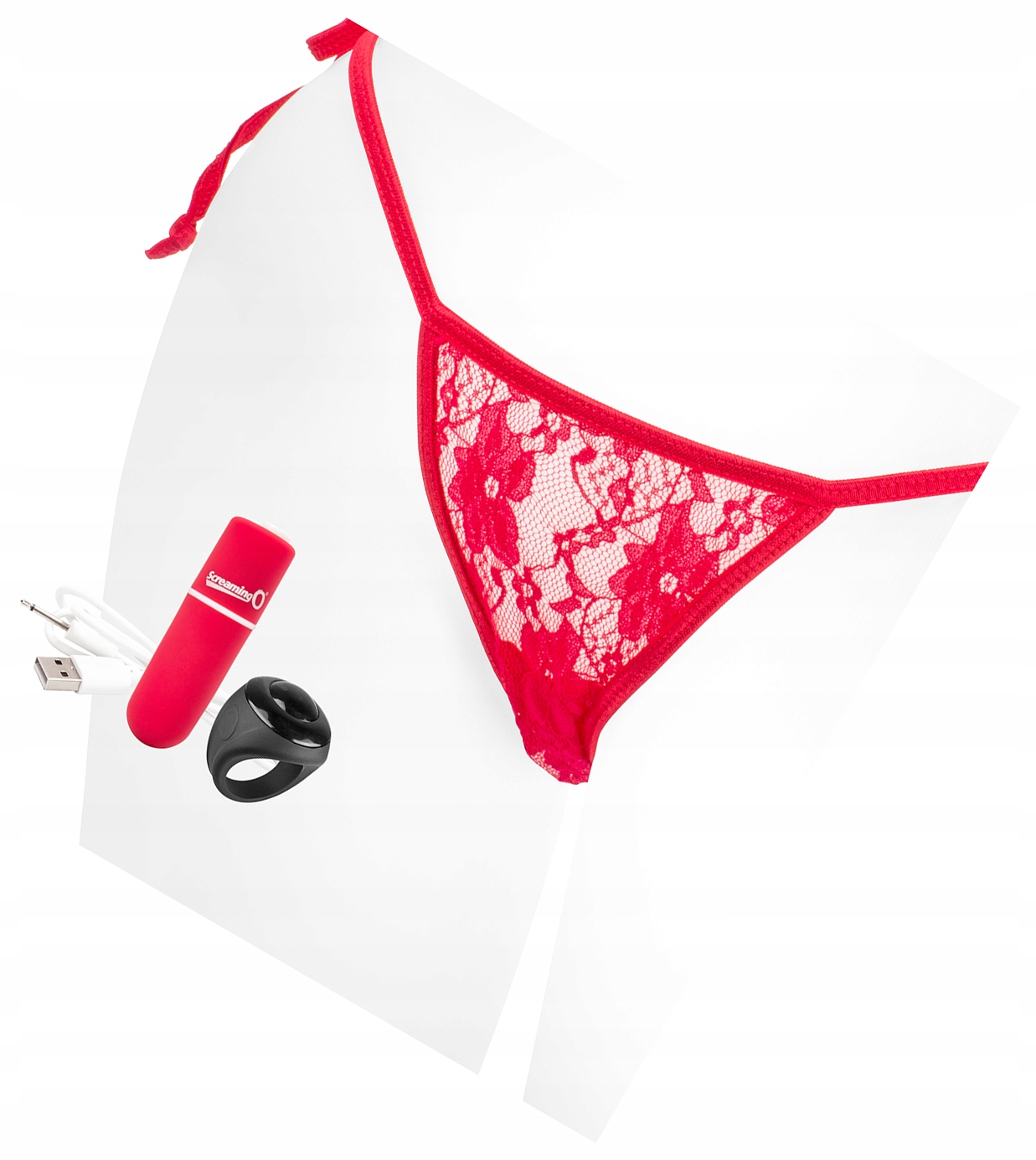Спокусливі мереживні трусики зі спеціальною кишенею, в якій розміщено мініатюрний вібратор Vooom. Характеризується високою міцністю вібрації при низькому рівні шуму, ефективністю роботи і дистанційним керуванням. Управління здійснюється за допомогою пульта дистанційного керування, захованого у вигляді кільця, тому ви можете носити його навіть на виду та вільно змінювати програми. Їх десять - від делікатних до сильних, набір пульсацій і вібрацій, який задовольнить кожну жінку. Оскільки вібратор заряджається через USB, він високоефективний і може працювати на повній потужності більше години.