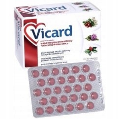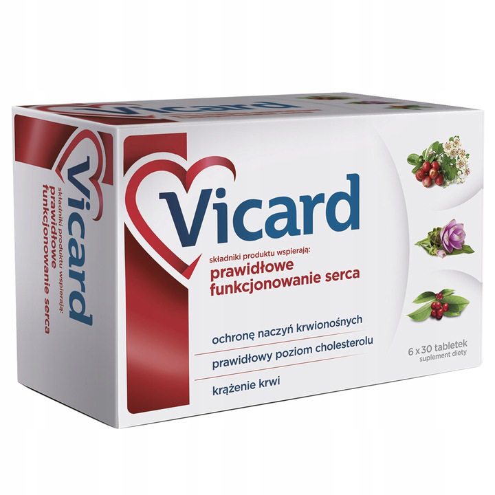 Інгредієнти добавки VICARD підтримують належне функціонування серця, сприяють захисту судин, допомагають підтримувати нормальний холестерин та покращити кровообіг. Екстракт Hawfoot підтримує серцево -судинну систему, підтримує роботу серця, збільшує подачу кисню та покращує кровообіг периферичної крові. Довгий екстракт ножа підтримує належне функціонування серця та циркуляції. Він також сприяє підтримці правильного рівня холестерину. Парагвайський екстракт захищає серце та судини.