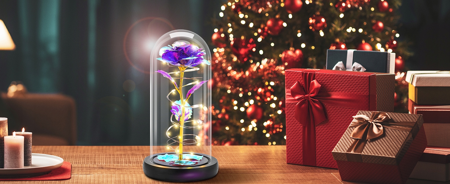 ВІЧНА РОЗА В СКЛІ, СВІТИТЬСЯ СВІТЛОДІОДНА КОРОБКА, ПОДАРУНОК ДО ДНЯ ДІДУСЯ І БАБУСІ