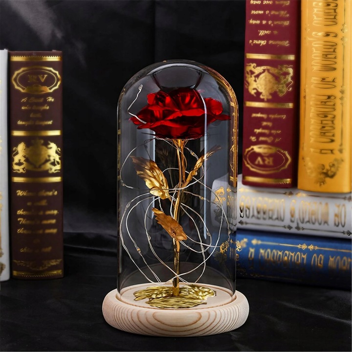 троянда вставлена під скляний купол, який захищає його від руйнування та пилу. Завдяки цьому ви можете бути впевнені, що він не буде знищений і буде чудовим подарунком на багато років