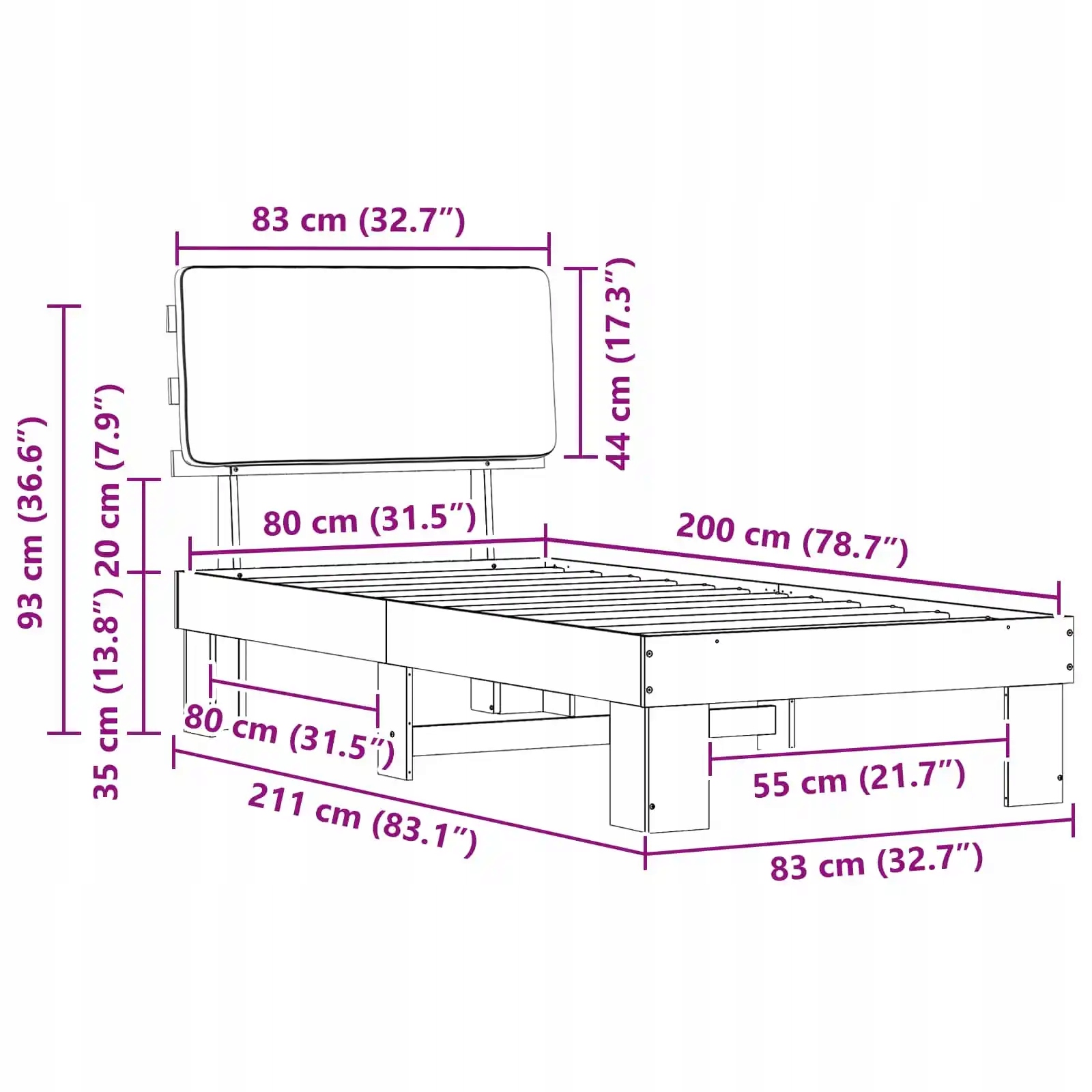 - Загальні розміри: 211 x 83 x 93 см (Д x Ш x В)