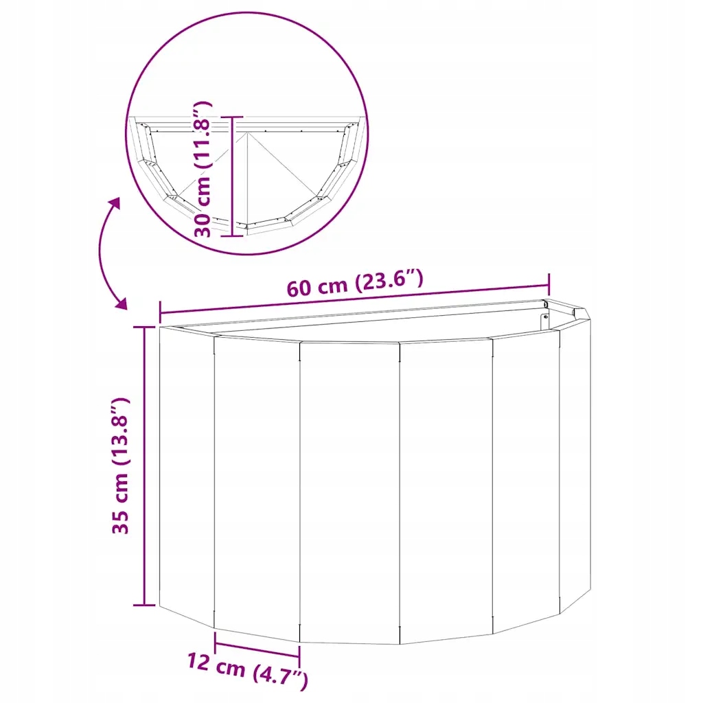 Цей стильний напівкруглий горщик для квітів — чудовий вибір для перетворення вашого відкритого простору. Завдяки сучасному зовнішньому вигляду та міцній конструкції рослини довго виглядатимуть красиво. Виготовлений з високоякісної сталі, він міцний і пропонує багато можливостей на терасах і в садах. Його універсальна форма дозволяє створювати цікаві композиції, які ідеально впишуться в різні стилі насадження. Сталева конструкція преміум-класу Сталь, відома своєю міцністю та стійкістю, гарантує довговічність і безпечне місце для ваших рослин. Металеве покриття надає сучасний вигляд, а гладка поверхня полегшує догляд. Продуманий напівкруглий дизайн Напівкругла форма додає візуального інтересу та максимально збільшує простір. Він добре працює в вигнутих місцях, стаючи чітким фокусом у саду. Призначений для зовнішнього використання. Ідеально підходить для саду, патіо та тераси, він гармонує з оточенням, створюючи приємну атмосферу. Простий процес складання Кашпо постачається з чіткими інструкціями зі складання. Для стабільної установки потрібні лише дві людини з інструментом. Простота догляду Просто протріть горщик м’якою тканиною, уникаючи агресивних хімікатів. Простий догляд гарантує, що горщик надовго залишиться естетичним.