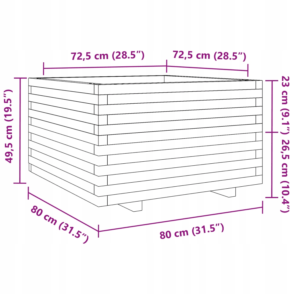 vidaXL Садове кашпо 80x80x49,5 см з масиву сосни