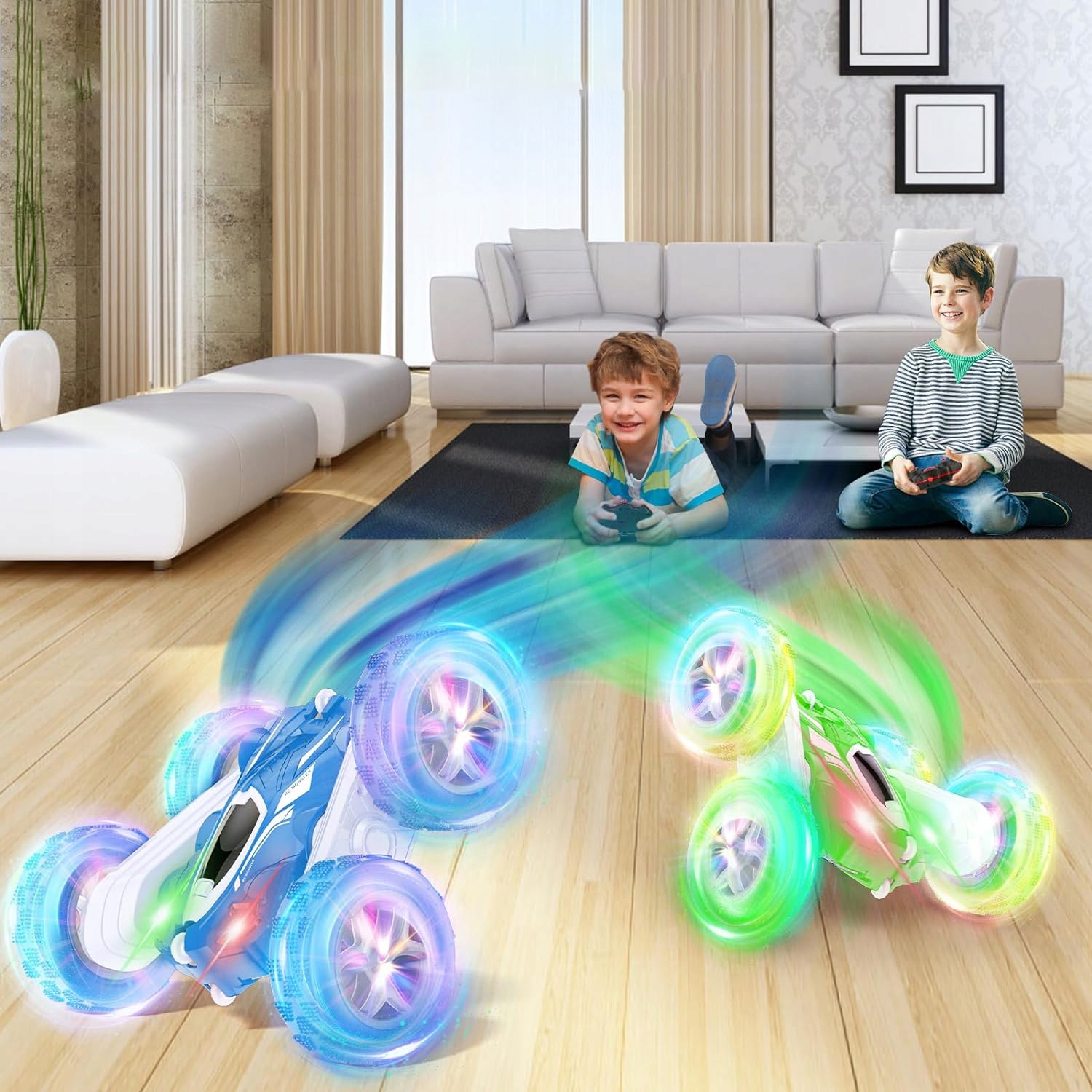 🚘 【дистанційно керований трюк -автомобіль】: Корпус дистанційного -керованого автомобіля стійкий до шоку та падіння. Шини виготовлені з високоякісної м'якої гуми, яка має амортизуючі, клейкі та не -сяві властивості. У трюкових машинах ви можете грати вночі, на пляжі, на траві чи в горах, придатних для ігор у приміщенні та на відкритому повітрі.