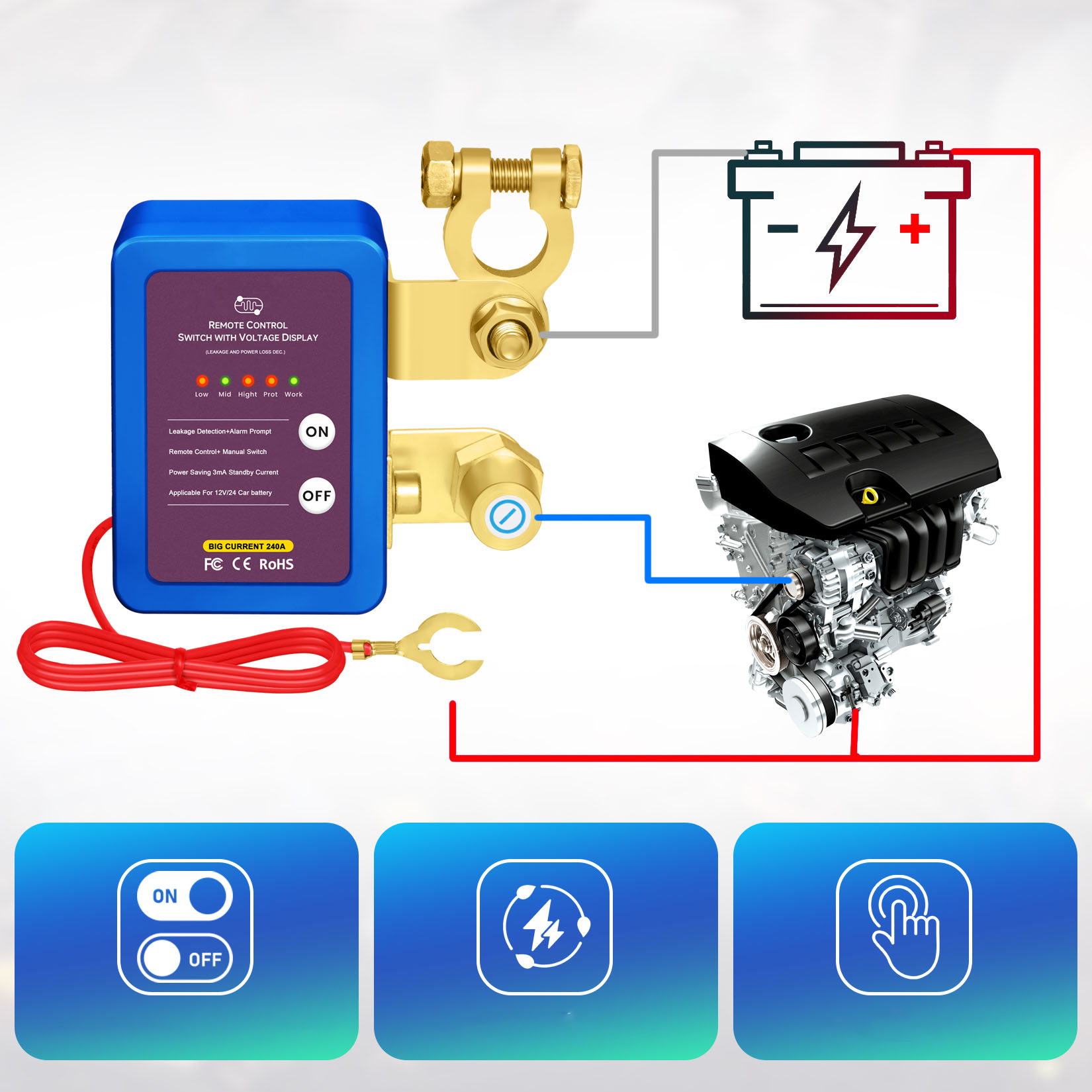 Новий пристрій для віддаленого відключення акумулятора в транспортному засобі! Цей перемикач акумулятора 240A 12В дозволяє повне контроль над живленням транспортного засобу.