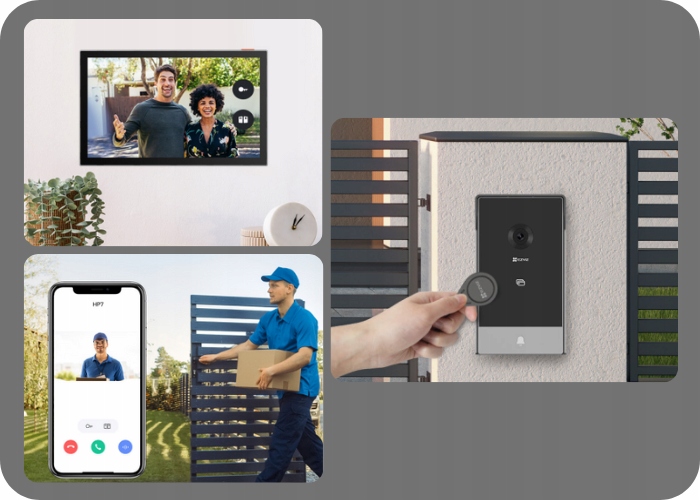 Перший в історії відео -інтерком Ezviz HP7 забезпечує повну зручність власників, що дозволяє попередній перегляд, розмову та контроль над входом для гостей, і навіть якщо вони не вдома. Це також збільшує безпеку будинку, оскільки з'єднання та домофон 2 в 1 дозволяють не тільки записувати відео у роздільній здатності 2K, але й виявити силует людини з реальними сповіщеннями.