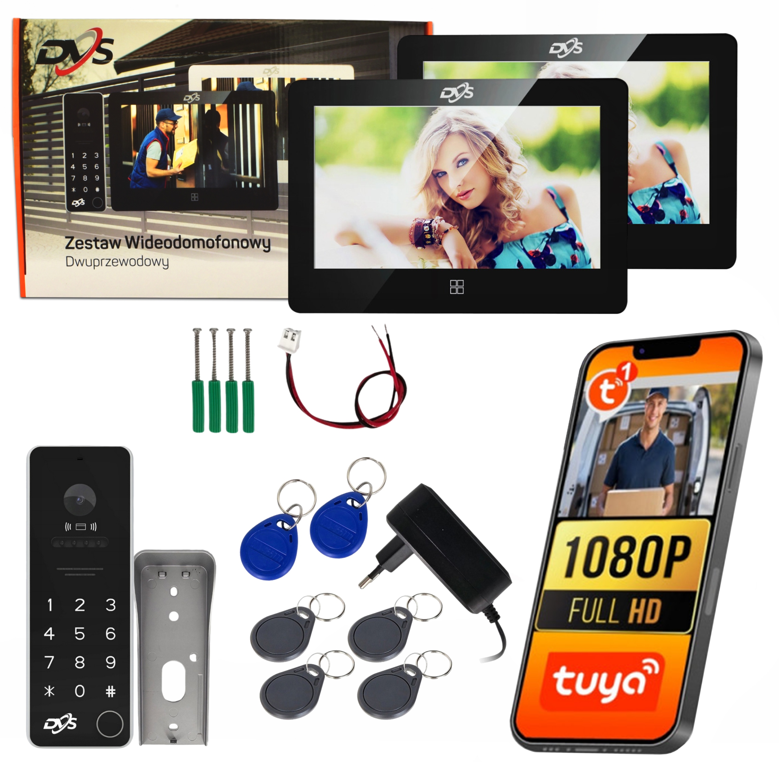 ВІДЕОДОМОФОН ДОМОФОН WiFi 2 СЕНСОРНІ МОНІТОРИ ЧОРНІ БРЕЛОКИ RFID TUYA DVS