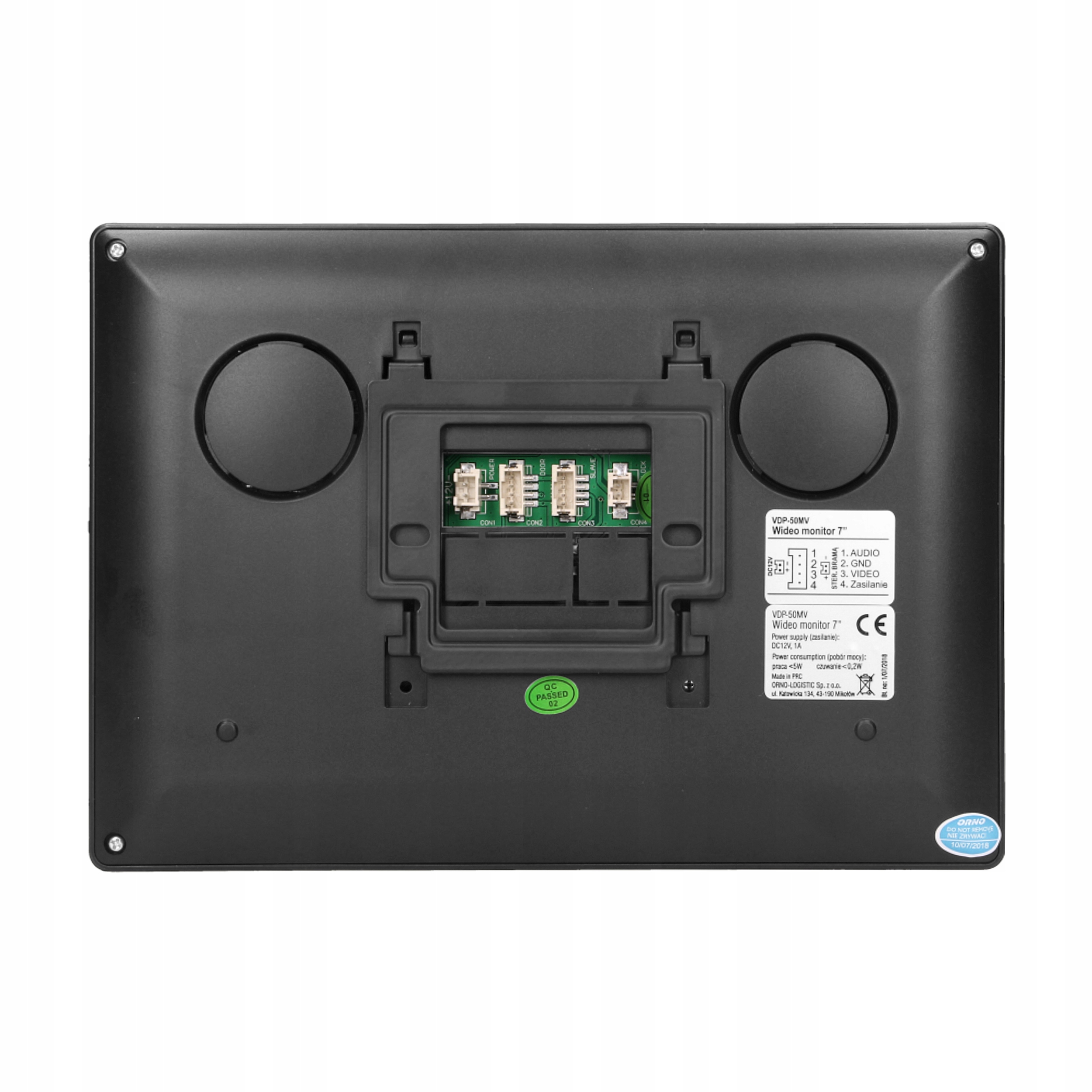 - Відеодомофон із кольоровою ультра- плоский 7" LCD монітор handsfree, сенсорна панель монітора з підсвічуванням кнопок, плавне регулювання параметрів монітора (гучність дзвінка та розмови, яскравість і колір зображення), 16 мелодій на вибір.