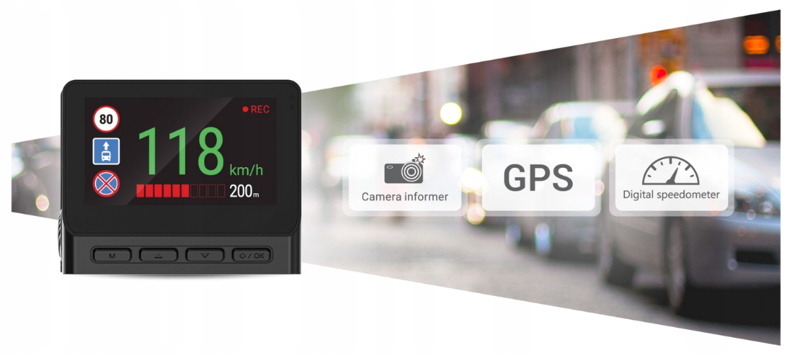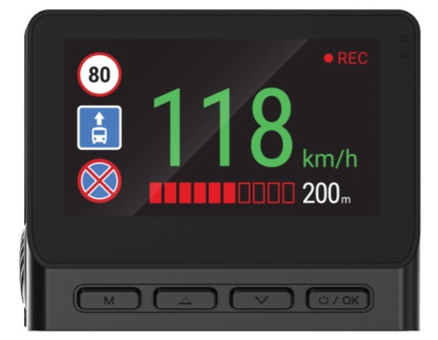 побудований модуль GPS -це чудова зручність. Мало того, що це заощадження маршруту та швидкості в записі (що може бути ключовим доказом), він також працює як цифрова камера швидкості . База даних тисяч вимірювальних точок знаходиться у ваших пальцях. Він попередить вас про регулярні камери швидкості, контроль швидкості, автобусні смуги або навіть небезпечні перехрестя. Це не заохочення для швидкого водіння, а ретрокуючий завжди безпечно і ... без сюрпризів у поштову скриньку.