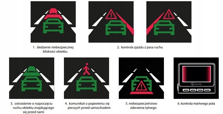 - adas Система: A) collision warning (FCWS), warning about starting movement (SVWS), monitoring dead field (BSD)* rear (RCTA)* (* require a rear camera connection)