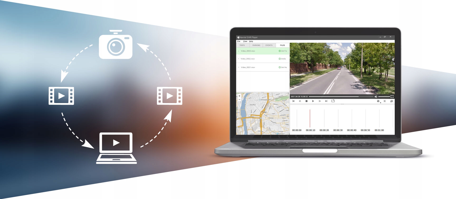 Програма Navitel DVR Player для комп’ютерів Windows дозволяє переглядати та редагувати файли, записані на відеореєстраторі, а також конвертувати їх в інші формати, щоб краще відповідати мобільним пристроям і платформам соціальних мереж.