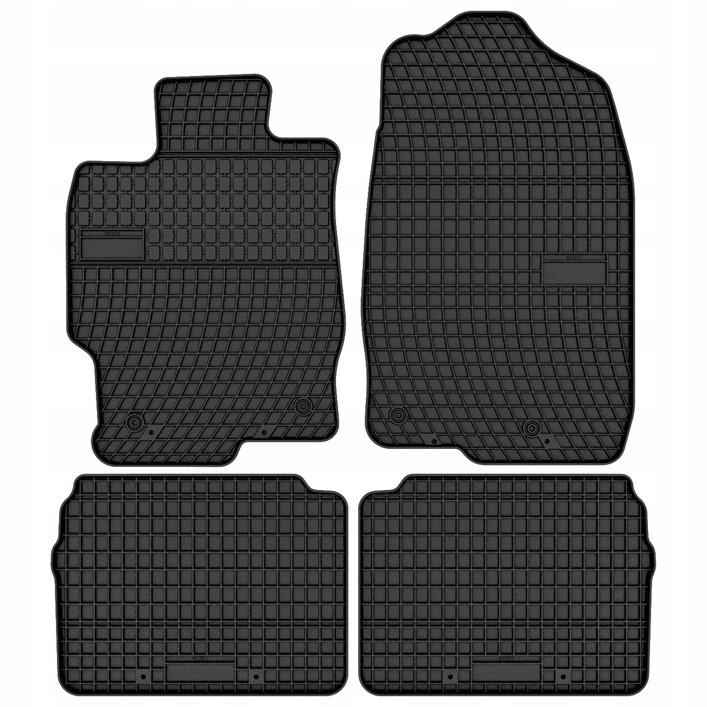 Килимки виготовлені з ретельно підібраної гумової суміші, розробленої спеціально для виробництва автомобільних килимків. Це робить їх стійкими до стирання. Ступінь відповідності форми оригінальним килимкам становить 100%, завдяки чому вони ідеально підходять, що значно захищає підлогу від бруду та підвищує комфорт водіння. Додатковий захист забезпечують шпильки знизу килимка, що запобігає його зсуву.